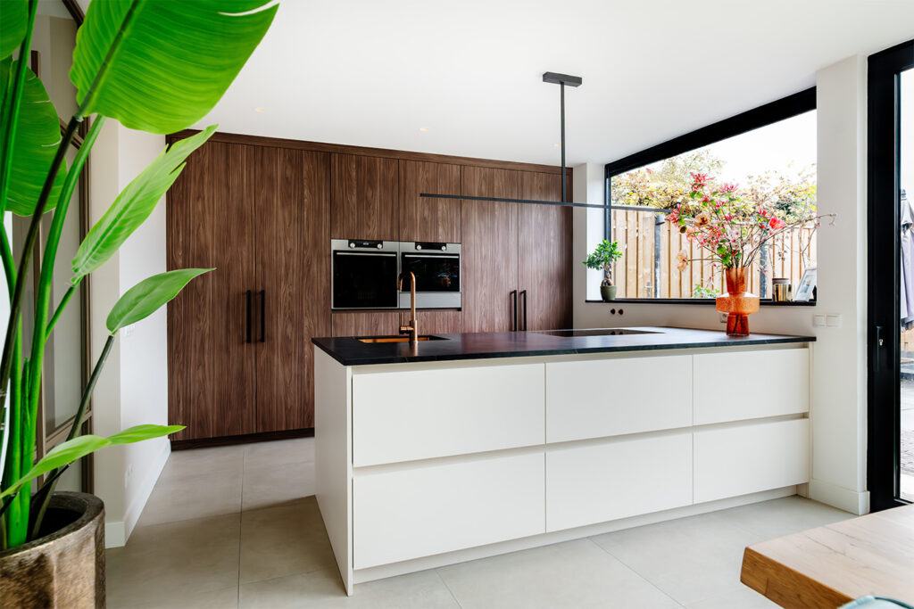 Deze Arnhemse woning had ooit een diepe uitbouw, die het huis optisch in drie delen splitste: woonhuis, uitbouw en kleine tuin. In 2025 heeft Studio Westgeest deze grenzen vervaagd waardoor de woning één geheel werd en de tuin als vanzelfsprekend een verlengstuk van het interieur. De uitbouw strekt zich uit over de volledige breedte van het perceel. Zo ontstaat er een tuin met ruimte voor de zithoek en groen. De overgang van binnen naar buiten is geleidelijk door grote glazen puien en gekozen materialen op vloeren en wanden die van binnen- en naar buiten naadloos op elkaar aansluiten.